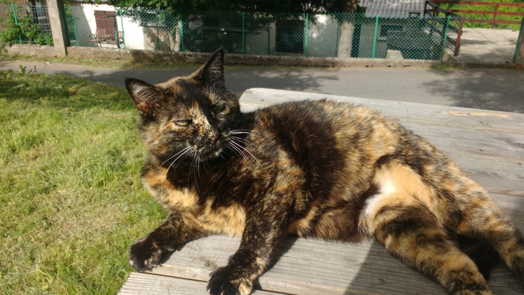 Elle vit avec d’autres chats libres dans un abri que Jean Marc a fabriqué.