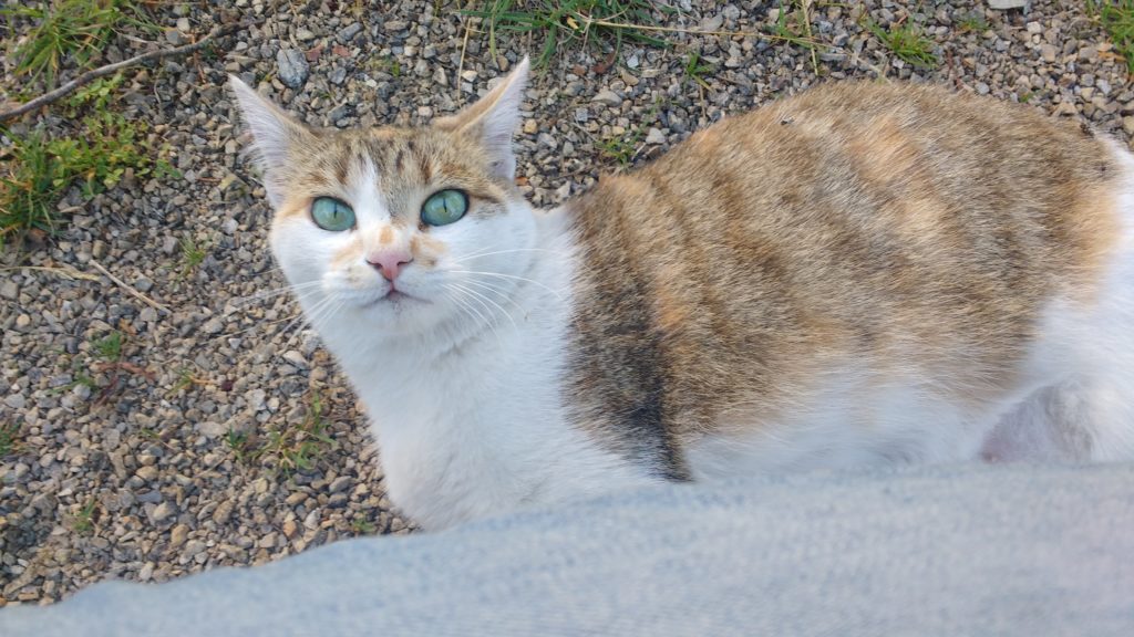 elle s’est rapprochée des humains pour pouvoir manger malgré qu’elle était très sauvage, à force de patience et d’amour, Micha est devenue sociable, elle vit dehors la nuit et passe ses journées dans la boutique de sa gardienne, elle réclame même des câlins aux clients. Les chats choisissent leur vie et savent trouver de l’aide auprès des personnes bienveillantes, ils ont cette capacité à sentir les vibrations et les ondes que dégagent les gens.